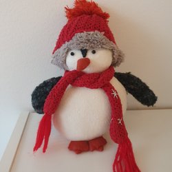 Söt Pingvin Plyschleksak med Mössa och Halsduk