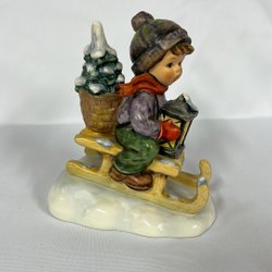 Hummel Figur - Pojke på släde med lykta och julgran