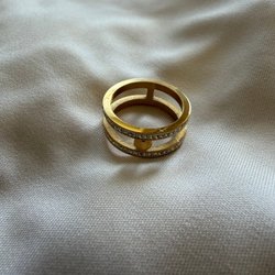 Ring i stål i guld och gnistrande stenar