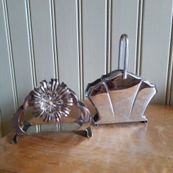 Två st servetthållare i metall märkt Import Mussbach