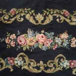 Gammal broderad textil med blomstermotiv