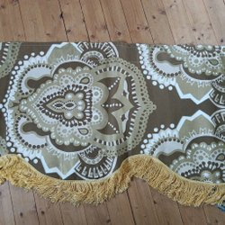 Retro vintage gardinkappa i guld vitt brunt med fransar 3,85 m lång