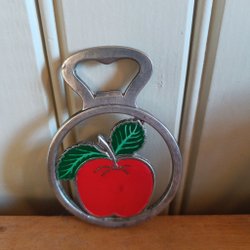 Retro kapsylöppnare flasköppnare med emaljerat äpplemotiv