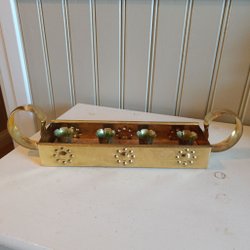 Äldre adventsljusstake uttagbar ljushållare trä/ mässing märkt Made in Sweden