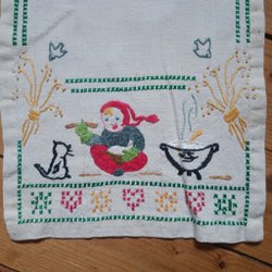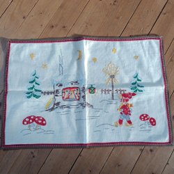 Två st juldukar med broderade tomtar