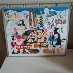 Stor gammal broderad bonad med tomte och årtalet 1962