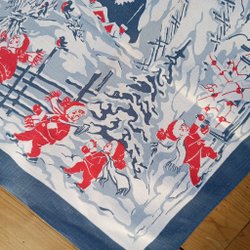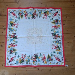 Retro äldre julduk med tomtar och änglar