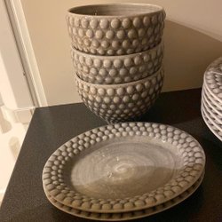 Skålar och fat i grått