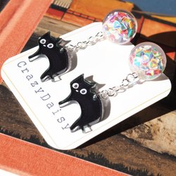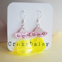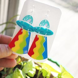 Jag gör örhängen av polymer lera, resin och acrylic.