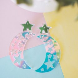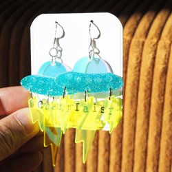 - Akrylörhängen, jag designar, jag tänker vad örhangen ska bli och se ut. Jag beställer, köper olika delar eller laserskärande bitar. Jag monterar, sätter ihop dem själv. Jag skär acrylic bitarna själv eller skapar vid silikonform om bitar är små eller enkla design.