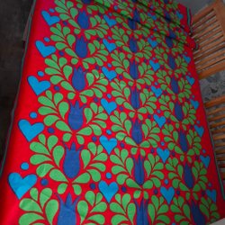 Retro Tygtryck med Tulpaner och Hjärtan, Klara färger,Jul Advent