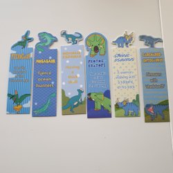 6st blå dinosaurie bokmärken
