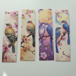 4st fåglar med rosa blommor bokmärken