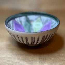 Keramikskål med mönster i lila och grönt