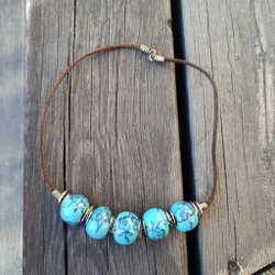 Halsband Blommiga Blå Pärlor Keramik