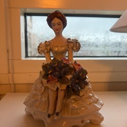 Vintage porslinsfigur – dam med blommor – dekoration / prydnad