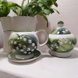 BAVARIA HANDMÅLAD GRÄDDKANNA OCH SOCKERSKÅL