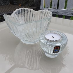 HUMPPILA FINLAND 2 DELAR SKÅL OCH LJUSSTAKE KONSTGLAS