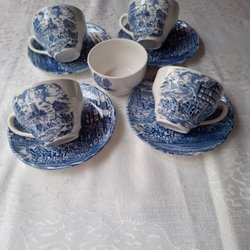 5 Kaffekoppar med fat och assietter The Mill Staffordshire