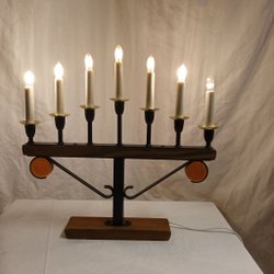Adventsljusstake med Bärnstensfärgade Glasblock i Svart Metall och Trä
