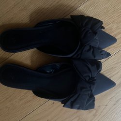 H&M Tofflor/slip in med rosett, Svarta, Storlek 40
