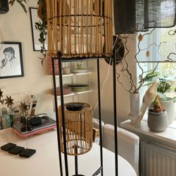 Pedistal och lampa i bambu och metall