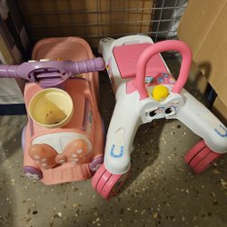 Två leksaksskotrar för småbarn - Tåg och Enhörning