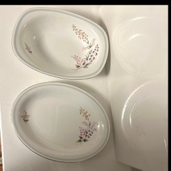 Fyra Hackefors Koppar med fat och assietter