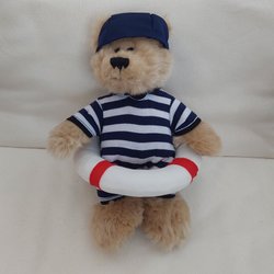 Nallebjörn med sjömanskläder och livboj