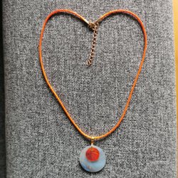 Orange halsband med snäckskal.