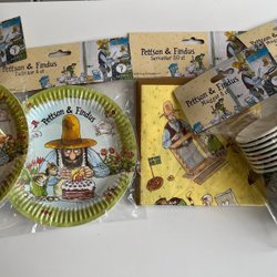 Pettson & Findus Kalaspaket - 16 Tallrikar, 20 Servetter, 16 Muggar