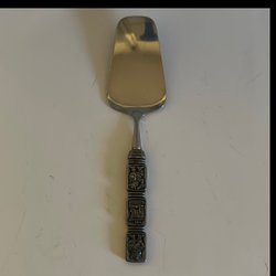 Tårtspade med vikingamotiv på handtaget.