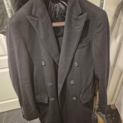 Mörkblå dubbelkmäppt ull och kashmir rock storlek 46 R