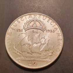 2 krona 1938 jubileum 1638 1938 konon fin.