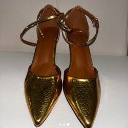Guldiga pumps med ankelrem