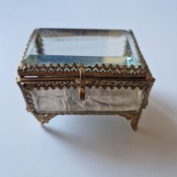 Gammalt smyckeskrin metall/glas