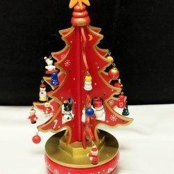 Speldosa,Julgran i trä med dekorationer