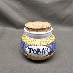 Keramik, Burk med korklock "Tobakk" Retro
