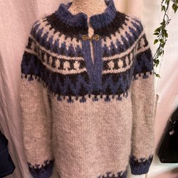 Handstickad Islandströja, Blå/grå Ull tröja. Stl XL