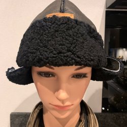 SKINNMÖSSA SVART MED FÅRULL OCH ÖRONLAPPAR
