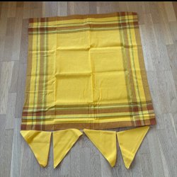 Oanvänd linneduk i gult med 4 servetter