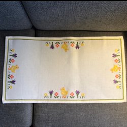 Broderad påskduk med kycklingar och blommor