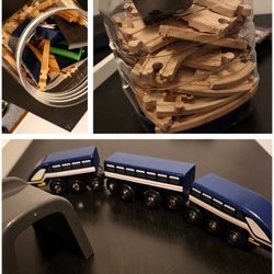 Tågbana i trä med tåg och tillbehör