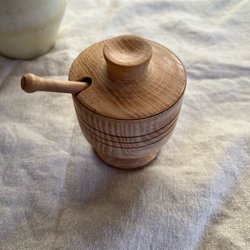 Träbehållare med lock och sked (Handgjord)