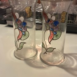 Vaser i glas med handmålat blommotiv, 2-pack