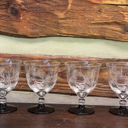 Vinglas,Svart fot,Slipad dekor,Art Deco,Vintage