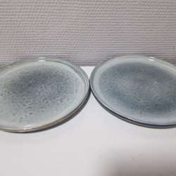 Två vita tallrikar med blått mönster