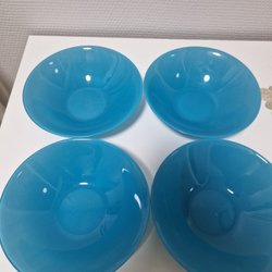 4 blåa skålar