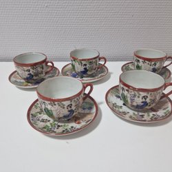Koppar med Fat 5st Japanskt Porslin Stämplad