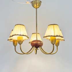 Taklampa, Swedish Modern, trä & mässing, 1940-tal.